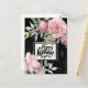 Inspirational scripture Birthday postcard depicts beautiful watercolor blush, pink flowers and greenery with a black background. The back features a portion of Bible Verses Numbers 6 24-26, "The Lord bless you and keep you; The Lord make His face shine upon you, ... and give you peace." _