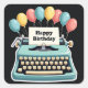 Celebrate in style with this charming pastel vintage typewriter design, bursting with colorful balloons and streamers, perfectly capturing the jovial essence of a birthday. generativecontent.