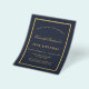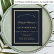 A dark blue background, a decorated with a faux gold frame. Personalize and add a name and party details. The name is written with an elegant hand lettered style script.