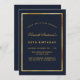 Birthday blue gold classic simple invitation