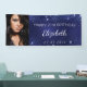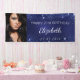 Celebrating a 21st (or any age) milestone birthday for a girl/woman. A dark blue background. The blue color is uneven. Decorated with faux glitter dust. Personalize and add your own photo of the birthday girl. Use a vertical/portrait size photo. The text: The name in gray with a modern hand lettered style script. Personalize and add a name, age 21 and a date. Can be used both as welcome banner or party wall decoration.
