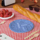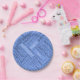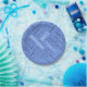 BIRTHDAY PARTY. This modern typographic design in shades of blue uses the words BIRTHDAY and PARTY to convey a clear message. You can personalize the plates with a name in matching light blue script.