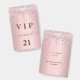 A modern, stylish and glamorous badge for a 21st (or any age) birthday party. A blush pink gradient background with faux glitter drip, paint dripping look. With the text: VIP. Personalize and add a name, age, party details on the back. The name is written with a modern hand lettered style script with swashes. To keep the swashes only delete the sample name, leave the spaces or emoji's in front and after the name.