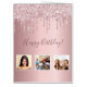 A card for a girly and glamorous 21st (or any age) birthday. A blush pink background with drips, paint dripping look. The text: The name is written with a large modern hand lettered style script. Template for name, age 21 and a date. Personalize and add your own text inside and a vertical photo of the birthday girl. Back: 3 square photos.