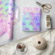 Elegant, girly, glamorous style party gift wrapping paper for a 18th (or any age) birthday. A trendy holographic background with unicorn and rainbow colors in pink, purple, rose gold, mint green. Decorated with blush pink faux glitter. Personalize and add a name and text. Purple colored letters.