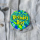 Here's a cool colorful popular round button pin with yellow and blue circles or dots in a geometric pattern and a green background and "Birthday Boy" text in 3d look yellow, or add your own custom text. Easy to customize this fun and unique party button badge pin--easily personalize with any age or name, etc. A happy button pin favor for that special birthday boy (or girl) as well as for guests at parties for children, teens, and men and women of all ages! Lots of sizes!
