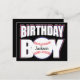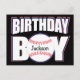 A fun baseball themed birthday postcard for baseball players and fans. With a unique BIRTHDAY BOY design with a baseball in the middle and a custom text box where you can type in your own baseball player's name. Can be used as an invitation for baseball themed birthday parties or as a birthday card baseball lovers. Just click to personalize the template and customize it with your own name!