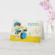 A cute birthday card for a special boy or young man. The design shows a boy playing drums on a grunge background in cream and yellow with colorful musical note accents. Graphics https://www.etsy.com/shop/Prettygrafikdesign.