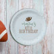 Gear up for the ultimate celebration with these boy birthday party supplies featuring a sports football theme. These custom paper plates showcase stylish typography with a name and age template, adding a personalized touch to your event. Designed in a simple minimalist style with a cute whimsical fun flair, the plates feature an athlete player and a touchdown ball for that perfect classic decor for parties look.