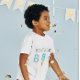 Fun ice cream theme birthday shirt featuring watercolor illustration of blue and mint green ice cream on a waffle cone. The text on the front says "birthday boy" and you can add your child's and name and age on the back.