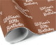 Elegant, classic, trendy party wrapping. A brown, rust colored background, white text.
