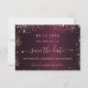 A modern Save the Date card for a 50th (or any age) birthday party. A burgundy faux metallic looking background color. Decorated with rose gold faux sparkles. The text: Save the Date is written with a large trendy hand lettered style script.