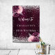 A dark gradient burgundy background. Decorated with faux silver sparkles and burgundy and pink flowers, roses. Personalize and add a name and age/event.