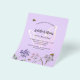 A violet, lavender colored background. Decorated with bees and painted wildflowers in violet and pink and a large butterfly. Personalize and add a name and party details.