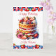 Personalized birthday card with inside coloring page. Cute personalized whimsical watercolor style ai illustration of a vanilla cake full of flowers, blueberries, strawberries and whipped cream.