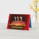 A Cake shot closeup with burning Candles, that's bright and colorful that's on a BIRTHDAY CARD!!!!!