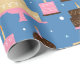 Add a custom touch to your child's birthday party with this adorable personalized wrapping paper. Gift wrap has a pattern of cakes with candles on a blue and pink background. Add two custom messages, such as happy birthday and your little one's name and age.