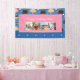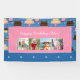 Add a custom touch to your child's birthday party with this adorable personalized banner sign. Banner has a pattern of cakes with candles on a blue and pink background. Add a custom message, such as happy birthday and your little one's name and age, and four of your favorite photos.