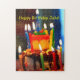 This birthday cake with many multi-colored lit candles is appropriate for wishing someone greetings on their special day. A puzzle is a unique birthday gift that can be personalized and worked together each year to celebrate.