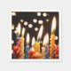 Close-up of melting glowing birthday candles with bokeh lighting background.