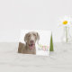 Say Happy Birthday with the cutest Weimerner out there! Card is 5.6 X inches in size and include interior design. It is blank inside for you to customize your own greeting