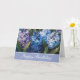 This birthday card is shown with an art print of beautiful hyacinth flowers.