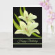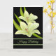 Birthday card is shown with a black background and a lovely lily flowers print.