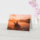 Cowboy crossing a river at Sunset