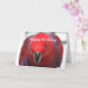 Greeting card saying Happy Birthday featuring a female red Eclectus Parrot. The inside is blank for your own message.