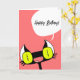A cheerful and fun birthday card featuring a black cartoon kitten with big yellow eyes and a playful, expressive smile. Perfect for wishing a special girl a joyful and memorable birthday filled with laughter and love.