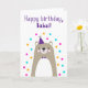 Birthday Card for Babai. If you call your father Babai instead of Dad, this birthday card is perfect for him. (Babai means father in Albanian.) Your babai will love this birthday card's cute, modern, colorful, Scandinavian-style design that features a brown and gray teddy bear cub with a purple party hat and bowtie and pink, yellow, and blue confetti with the text "Happy birthday, Babai!"