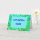 This is a blue, green card that has a square in the center of the design with the words "Happy Birthday Coach" in the center with a digital speckled design around the square.