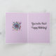 Colorful flowers circling a house against a black background is on the front. A smaller image of the same is printed inside the card with a light lavender background. See this design on another card in this shop.