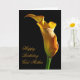A stately golden arum lily stands lit from the side . A perfect flower to convey your birthday wishes.