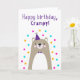 Birthday Card for Grampy. If you call your grandfather Grampy instead of Grandpa, this birthday card is perfect for him. Your grampy will love this birthday card's cute, modern, colorful, Scandinavian-style design that features a brown and gray teddy bear cub with a purple party hat and bowtie and pink, yellow, and blue confetti with the text "Happy birthday, Grampy!"