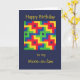 A Birthday Card for a mother-in-law, with a bright and colorful abstract patchwork design from cot-quilt by Judy Adamson.