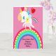 Sweet card for a one year old baby with a cute white, colorful Unicorn standing on an illustrated rainbow on a hot pink background. Thanks to Creative Fabrica for some of the elements in the design. All the words on the card can be changed.