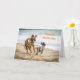 Happy Birthday card featuring a photograph of a German Shepherd Dog Alsatian and a Cockerspaniel running happily along a beach together playing. They are best friends having fun together playing with their ball.