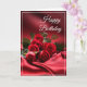Birthday card shown with a lovely red roses on satin photo print.