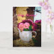 A Birthday card showing gorgeous roses of two colors nestled within an antique tea pot.