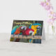 Greeting card saying Happy Birthday featuring three macaw parrots on a perch. The inside is blank for your own message.