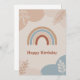 A birthday card with a rainbow and abstract background.