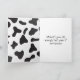 Cute cartoon cow with black and white abstract cow print for birthday.