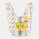 A fun, colorful bib for baby or kids birthday celebration, features a cute smiling cat with a party hat and birthday gifts on a background with little matching cats, birthday pigs, bunnies, and squirrels!
