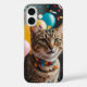 Funny and adorable phone case featuring a cat in a birthday hat with confetti and balloons. Perfect for celebrating birthdays with humor.
