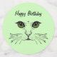 Birthday Cat Face Green Eyes Polka Dots Confetti