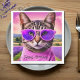 Whimsical fantasy art birthday napkins featuring a trendy, jazzy cat in a turtleneck and purple sunglasses, set in a lavender field. Ideal for those who love modern cats, humor, and early summer vibes.