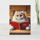 Persian cat reading a red book titled (how T0 Train Humans" in a kitchen for a funny birthday.
