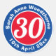 Commemorate a significant birthday with a Gift label sticker, which is decorated with the name of the recipient, as well as their age, and date of birth. Example shows 30th birthday.