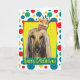 Celebrate a birthday with this whimsical Afghan Dog Greeting Card. With a cupcake balanced on it's head, this design is sure to bring a smile and giggles! BTW, This design has several versions, with different background colors. There is also an invitation to a Party version.